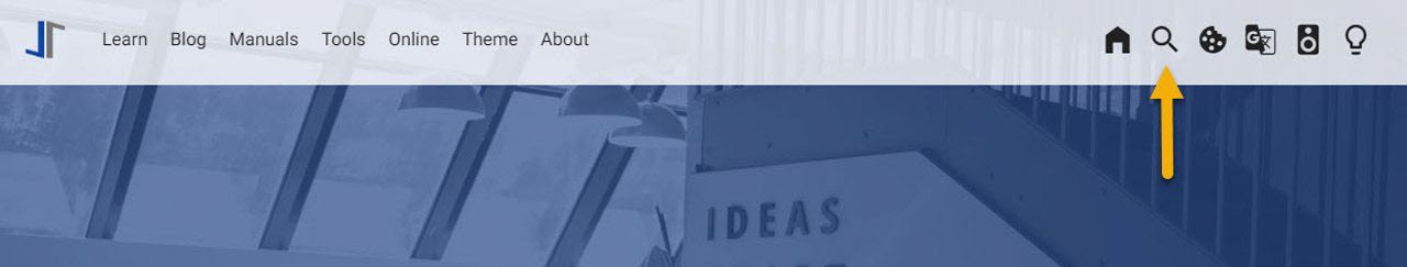 To access site_search, a magnifier button is available in the Quicklinks area in the menu bar at the top-right of every page.